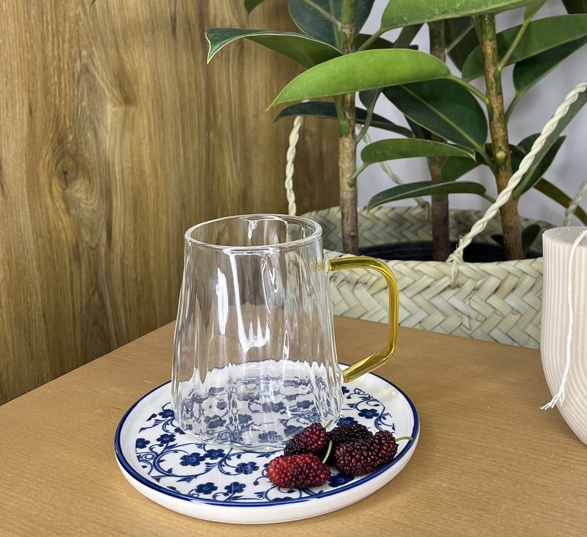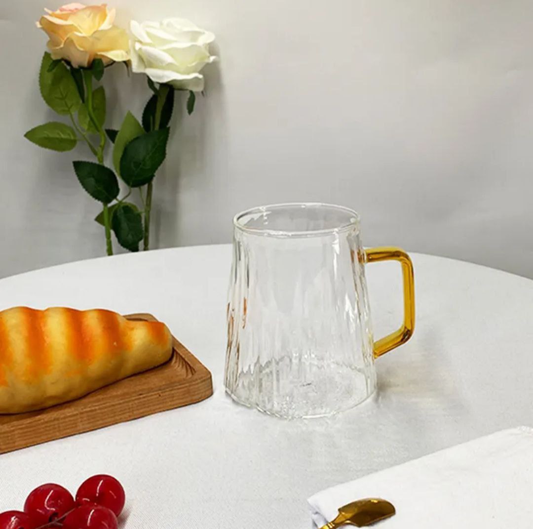 ماگ پیرکس دسته طلایی حجم ۳۰۰ میل وارداتی مناسب انواع اسموتی شربت و نوشیدنی های سرد
