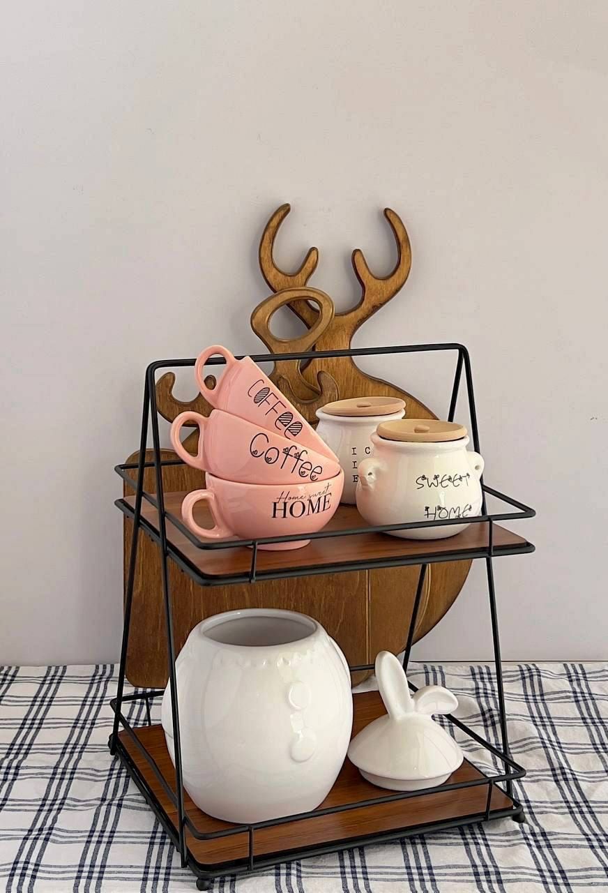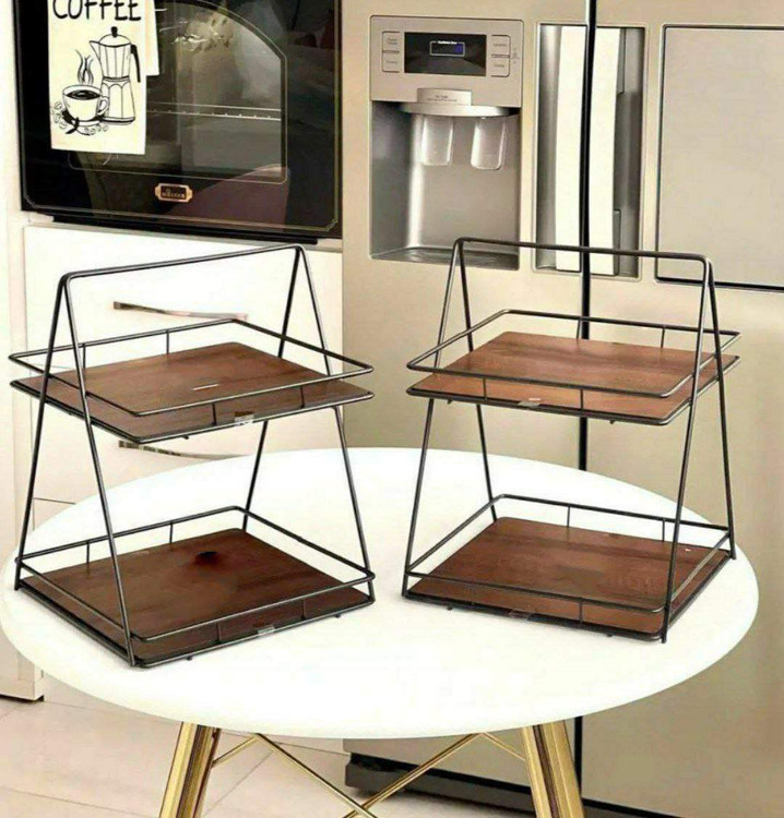 برای نظم دهی بیشتر وسیله های آشپزی روی کابینت بهتره از یه استند دو طبقه جادار استفاده کنین تا به راحتی کارتون کمک کنه