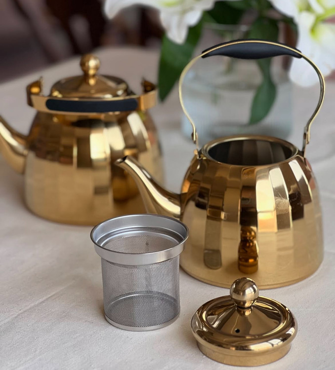 قوری استیل طلایی رنگ یونیک با طراحی مدل عربی، یکی از خاصترین و شیکترین انتخابها برای سرو چای، دمنوش یا شربتهای گرم محسوب میشه. این قوری با ظاهر درخشان و براق خودش، جلوهای لوکس و مجلسی به میز پذیرایی شما میده.