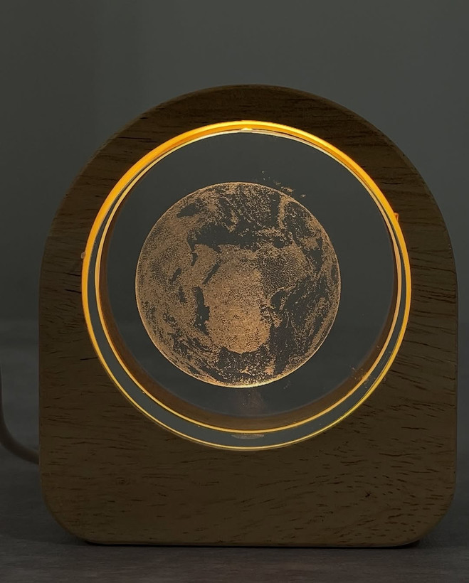 اتصال از طریق کابل USB استفاده را بسیار آسان کرده و باعث میشود بتوانید آن را به لپتاپ، پاوربانک یا آداپتور وصل کنید. کیفیت بالای شیشه کریستال و طراحی مینیمال پایه چوبی، این محصول را به یک دکوری خاص و هدیهای بینظیر تبدیل کرده است.