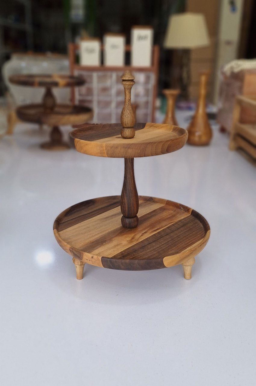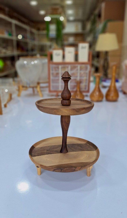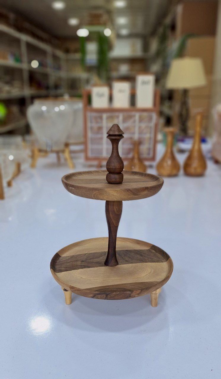 • دو طبقه با سینیهای گرد برای چیدمان شیرینی، میوه یا تنقلات