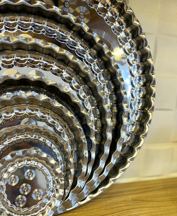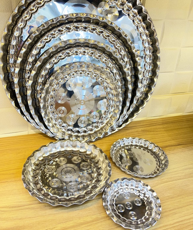 سینی استیل لبه کنگره ایی گرد وارداتی ضد زنگ سایزبندی