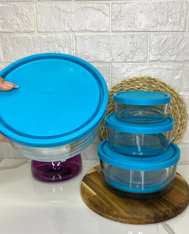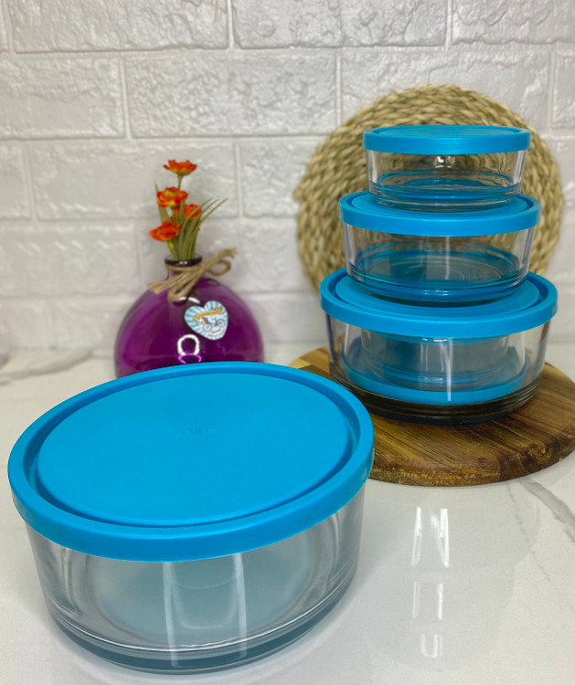 ☑️ ست سهتایی ظرف شیشهای شفاف با طراحی گرد و دربدار، انتخابی زیبا و کاربردی برای آشپزخانه و پذیرایی.