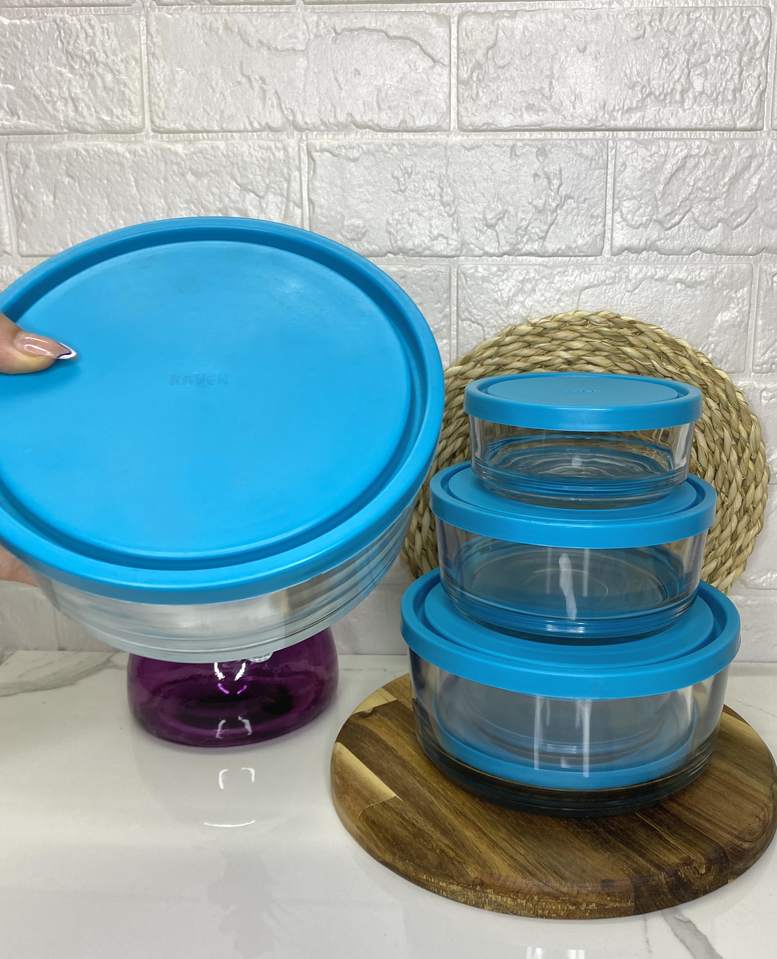🏷️ظرف بلوری شیشهای ۳ تایی گرد دربدار برند کاوه