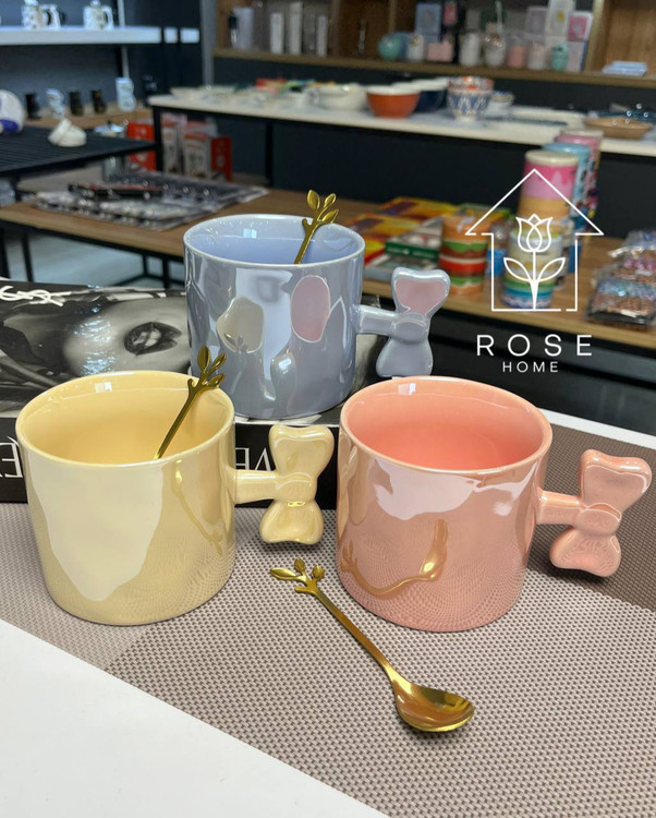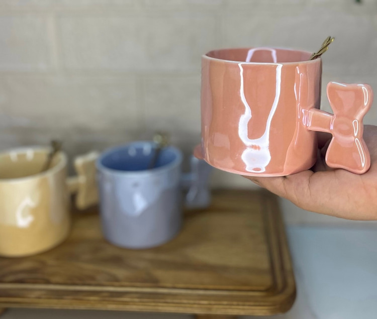 ماگ سرامیکی موجدار هولوگرامی قاشقدار، با دسته پاپیونی بامزه، هم خاصه هم خیلی جذاب 😍