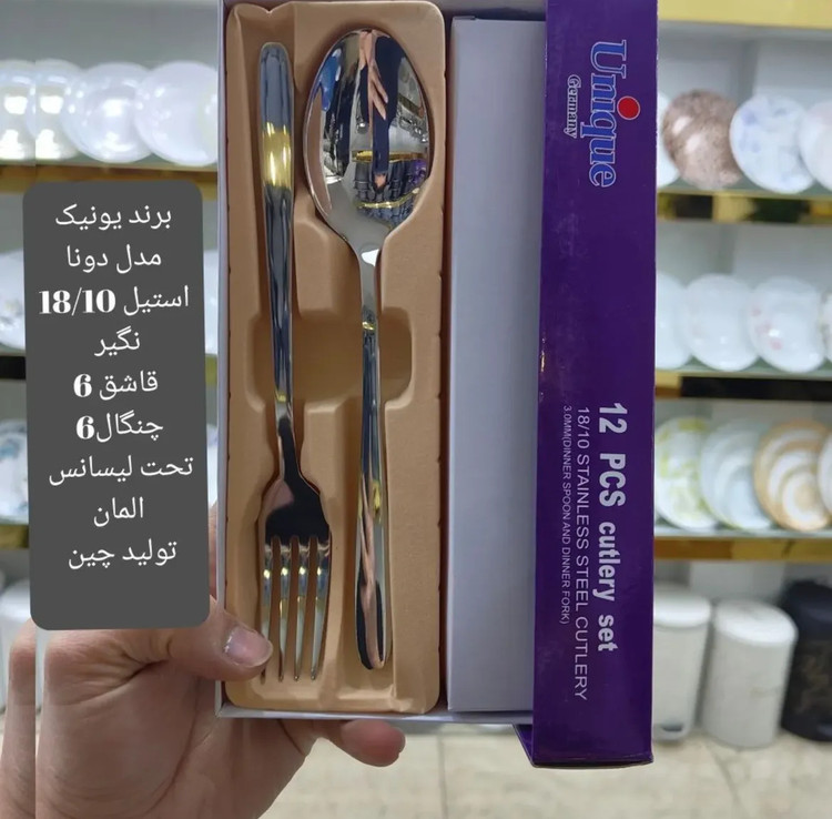 🏷️قاشق و چنگال استیل ۶+۶ عددی یونیک، یه ست خوشگل و کاربردی با جعبه بنفش شیک سنگین 💜