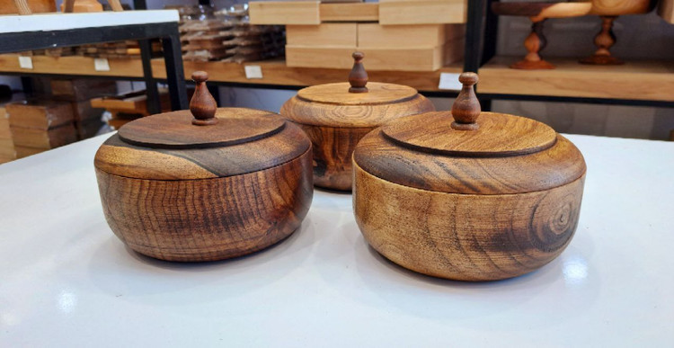 🏷️عنوان محصول: شکلاتخوری چوب گردو گرد دربدار قابل شستوشو قطر ۱۵ سانت