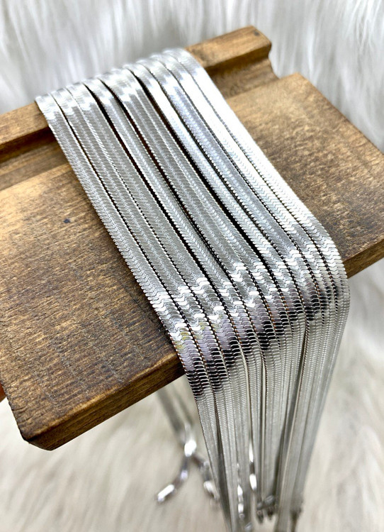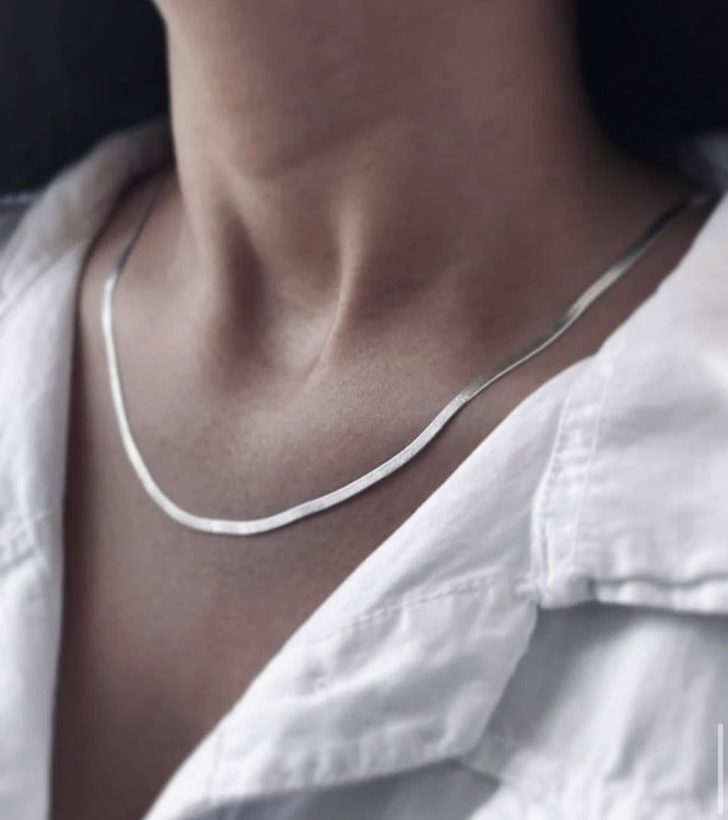 گردنبند ماری از جنس استیل براق و ضد حساسیت، با ضخامت ۴ میل و طول ۴۵ سانت.