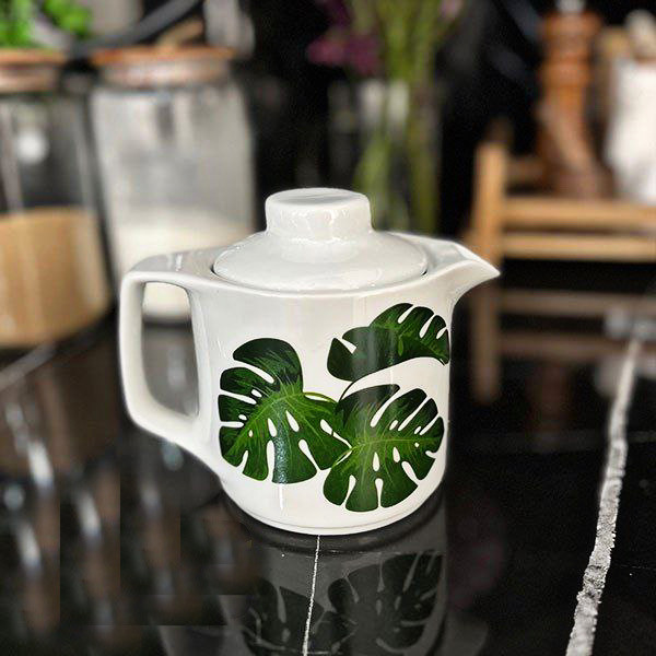 🍃 قوری چینی کلاسیک طرح برگ مینیمال
