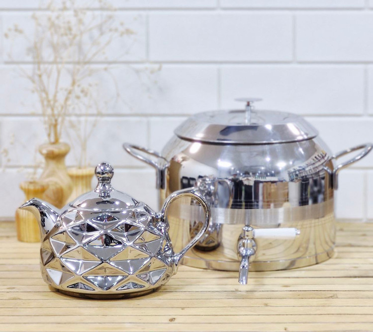📍قوری چینی نقرهای همراهش، هم ظاهر شیکی داره هم طعم چای اصیل ایرانی رو حفظ میکنه.