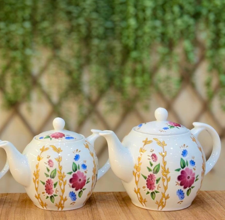 ☑️ قوری چینی با طرح گلدار خاطره، یادآور سادگی و زیبایی سرویسهای کلاسیک ایرانی است.
