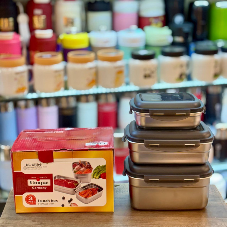 ظرف غذا استیل مستطیل دربدار برند Unique