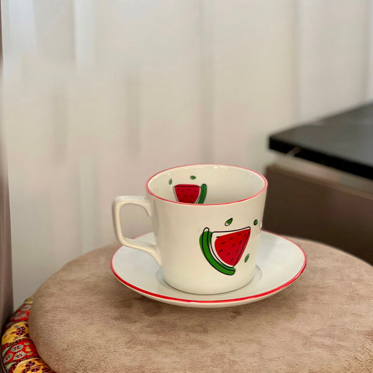 🏷️ست نیم لیوان چینی پرسلان همراه زیره (۲ طرح)؛