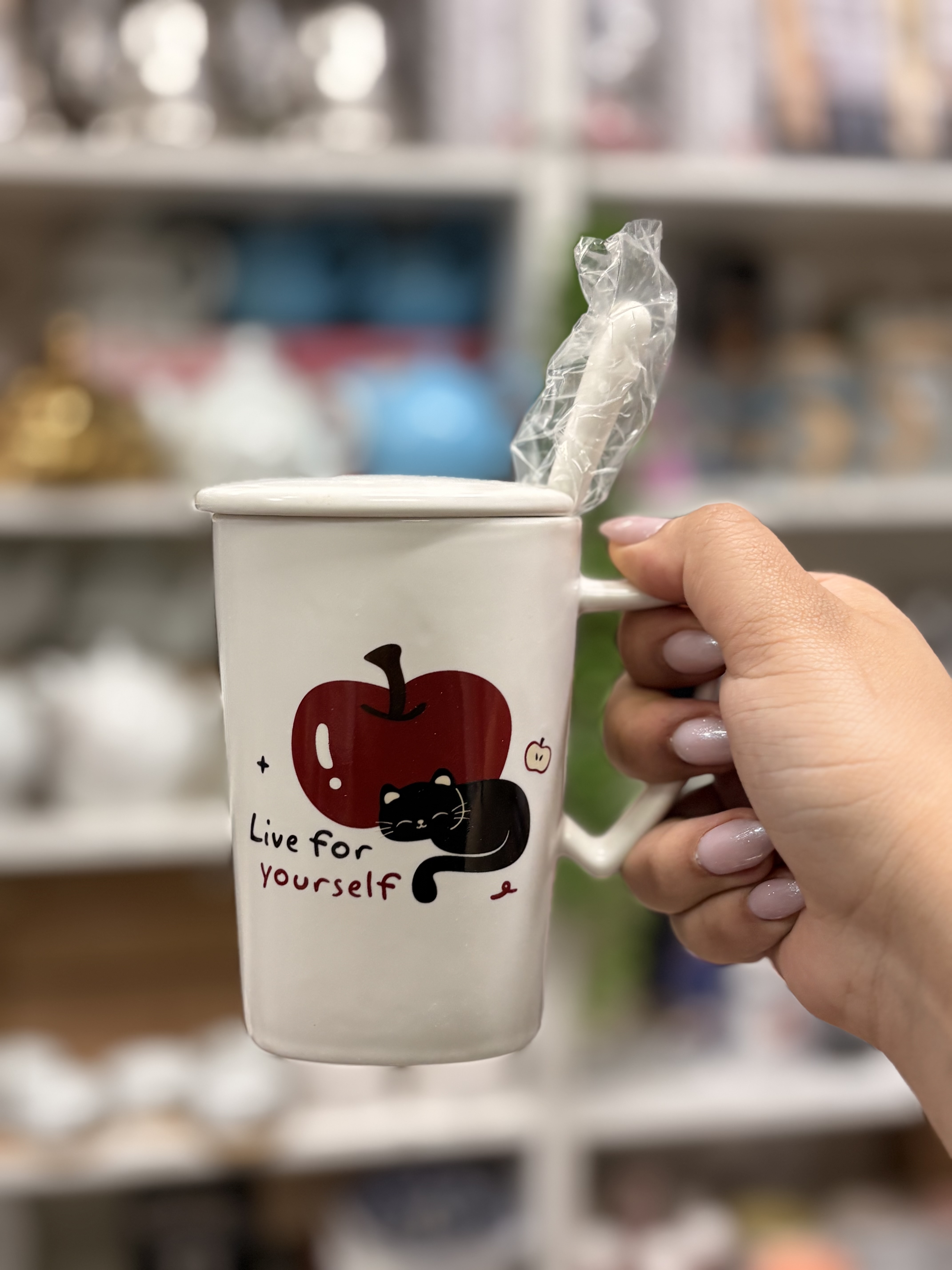 🏷️ماگ گربه سرامیکی دربدار و قاشقدار؛