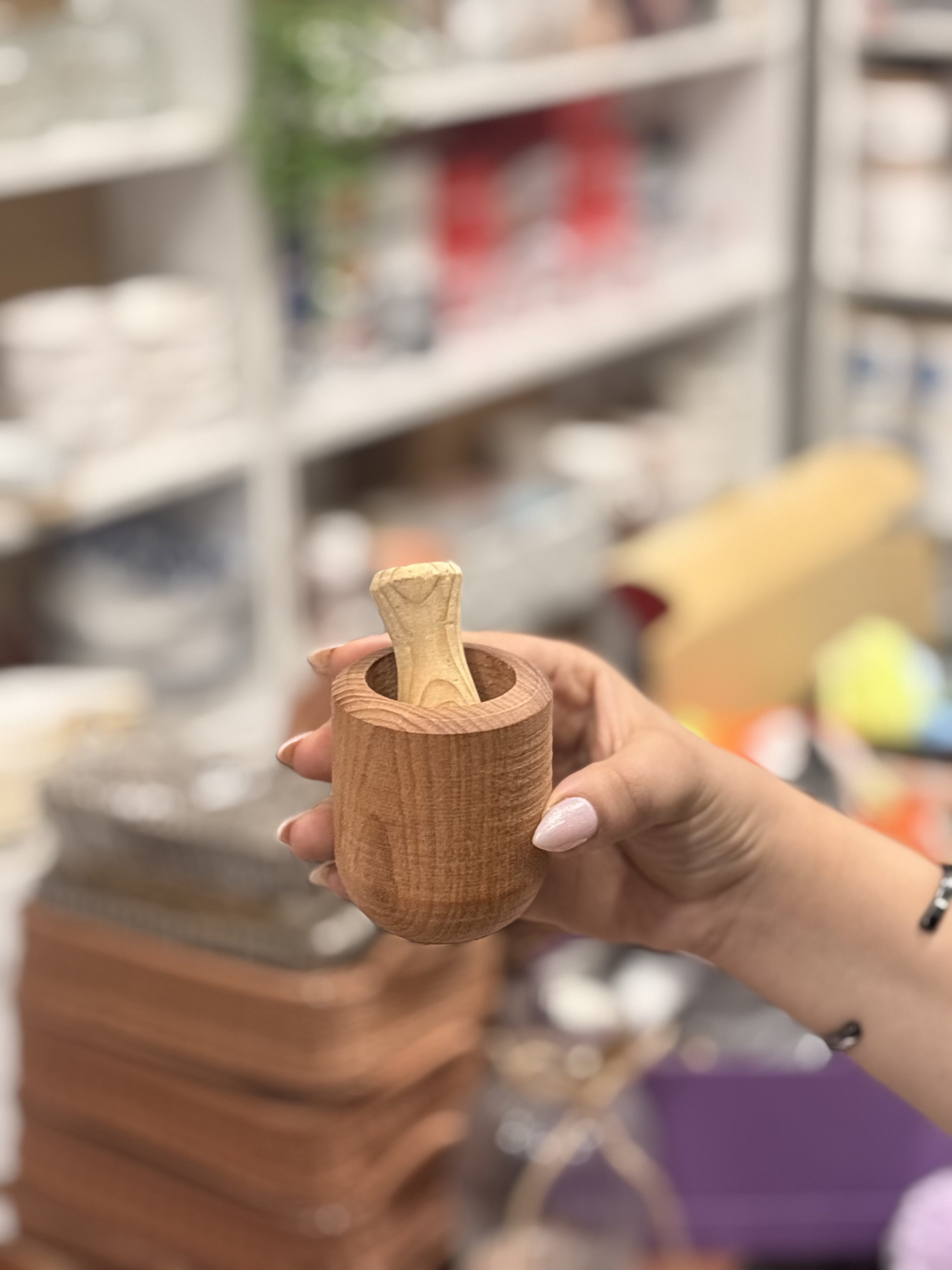📍هاون چوبی کوچک با ارتفاع ۷ سانت، خوشساخت و با کیفیت بالا. مناسب کوبیدن ادویههای کمحجم، زعفران و سیر، انتخابی کاربردی و دکوراتیو برای آشپزخانه.