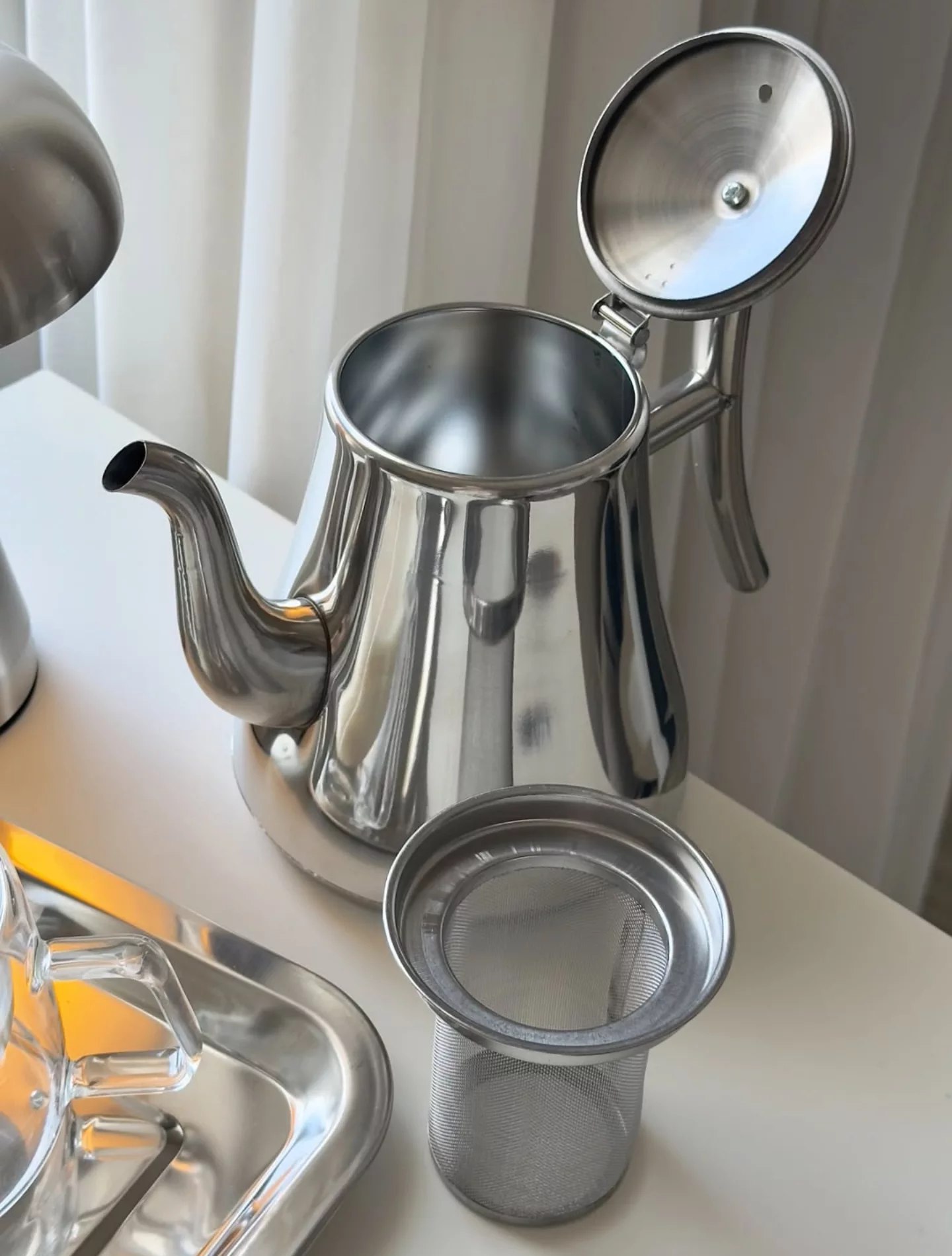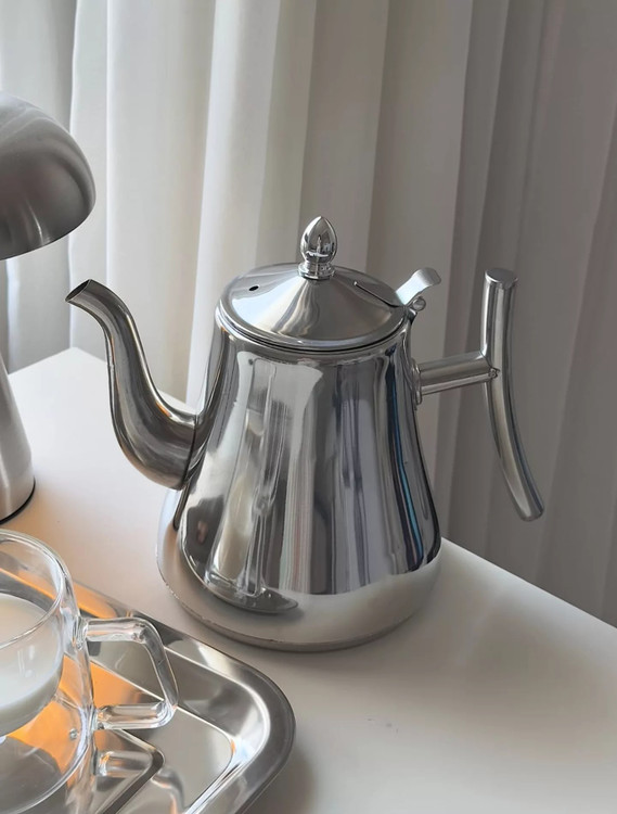قوری استیل چای عربی یونیک همراه صافی استیل دسته عربی