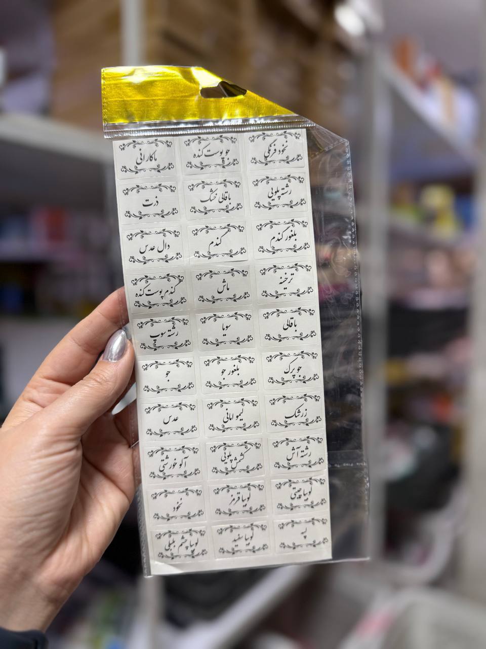 برچسب حبوبات و ادویه جات برای نظم دهی بیشتر ظروف به کار میرود در هر بسته ۳۰ تا از حبوبات و ادویه جات نوشته شده بدون تکراری بودن بسیار کاربردی