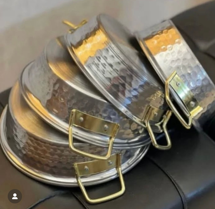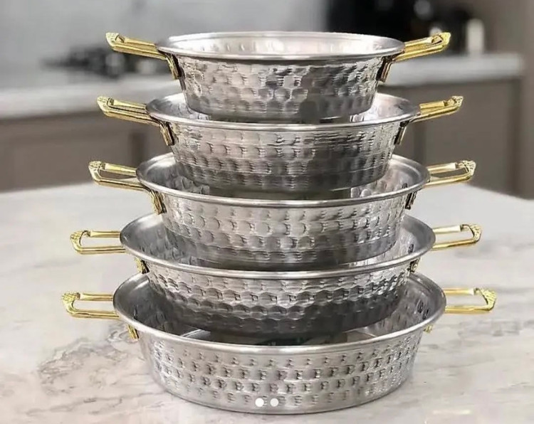 ماهیتابه روحی چکشی چهار سایز دو دسته دسته طلایی