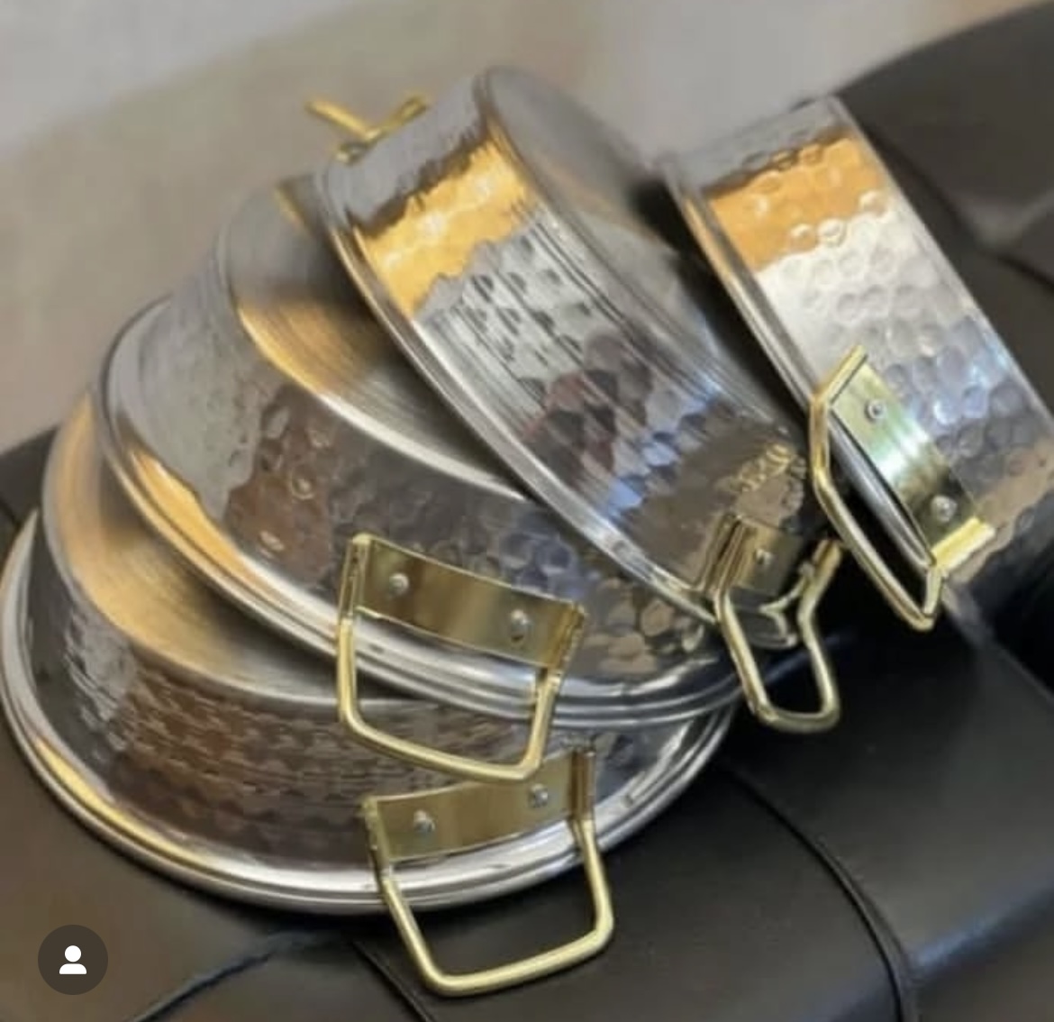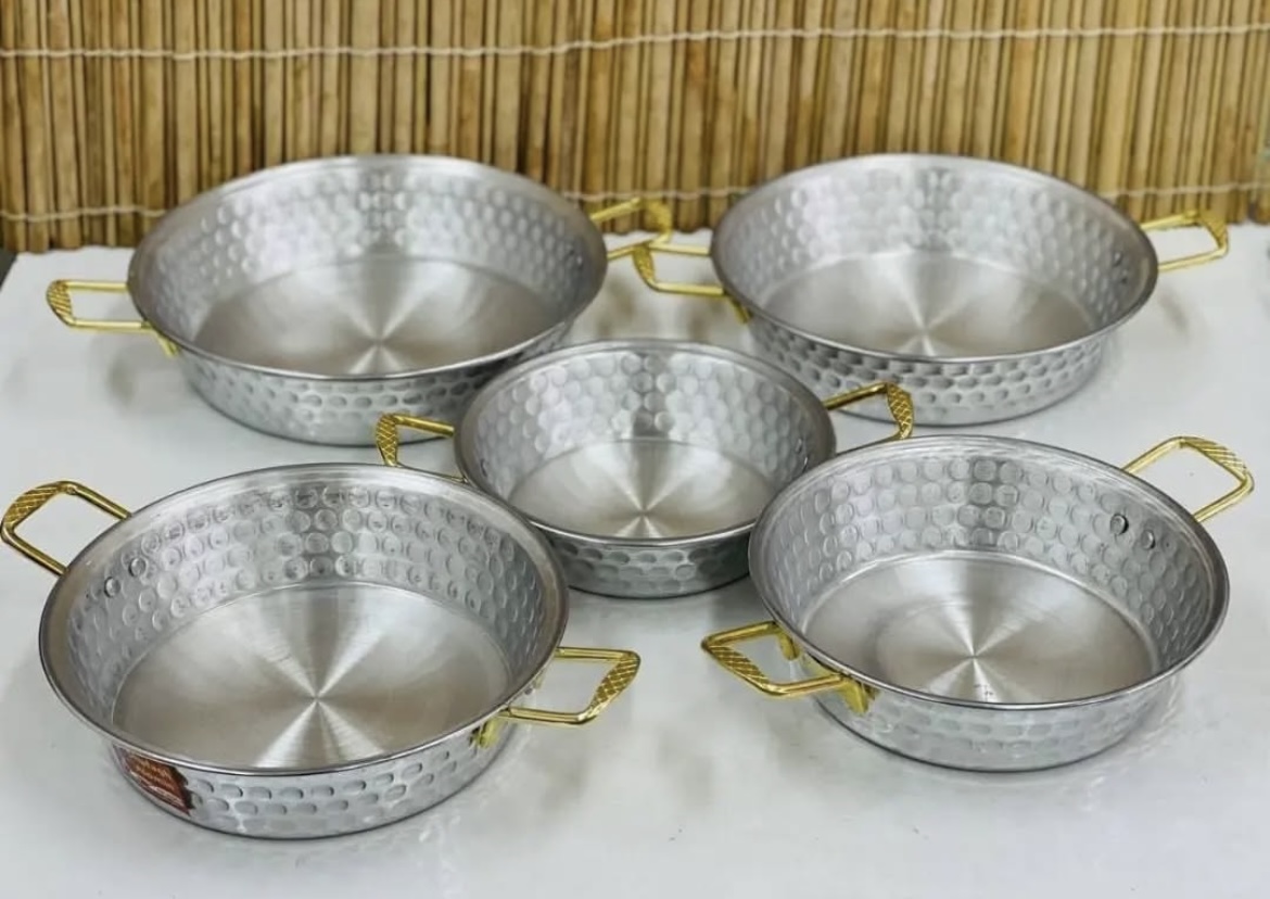ماهیتابه روحی چکشی چهار سایز دو دسته دسته طلایی