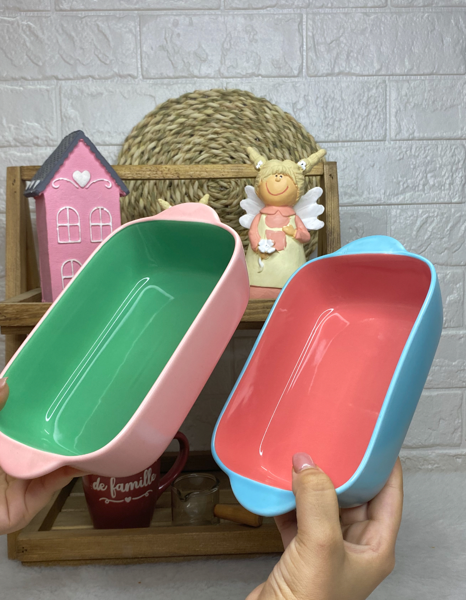 تابه سرامیکی مستطیل دسته دار فر و ماکروفر گود جعبه دار