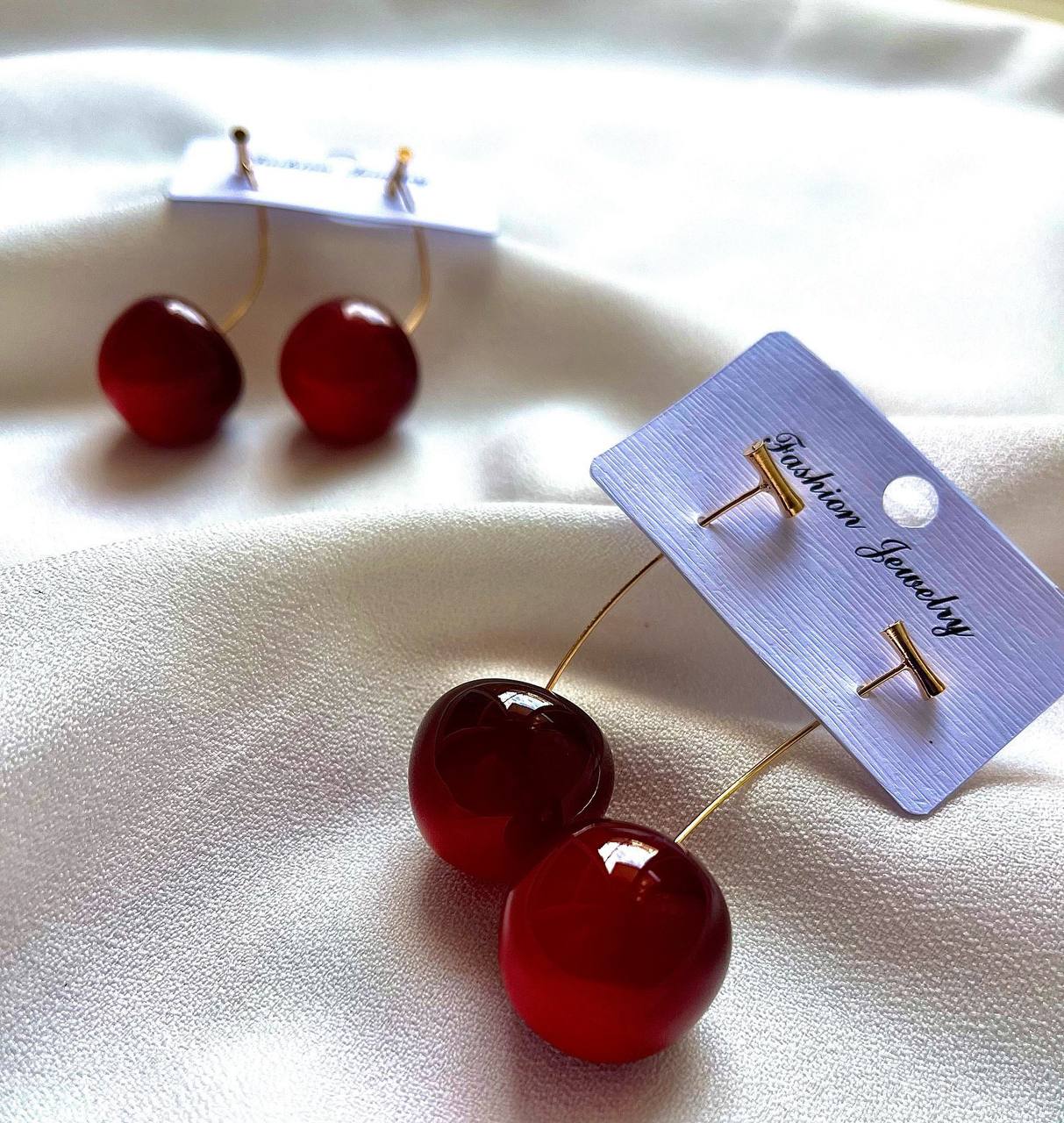 گوشواره طرح گیلاس استیل رنگ ثابت مشابه طلا